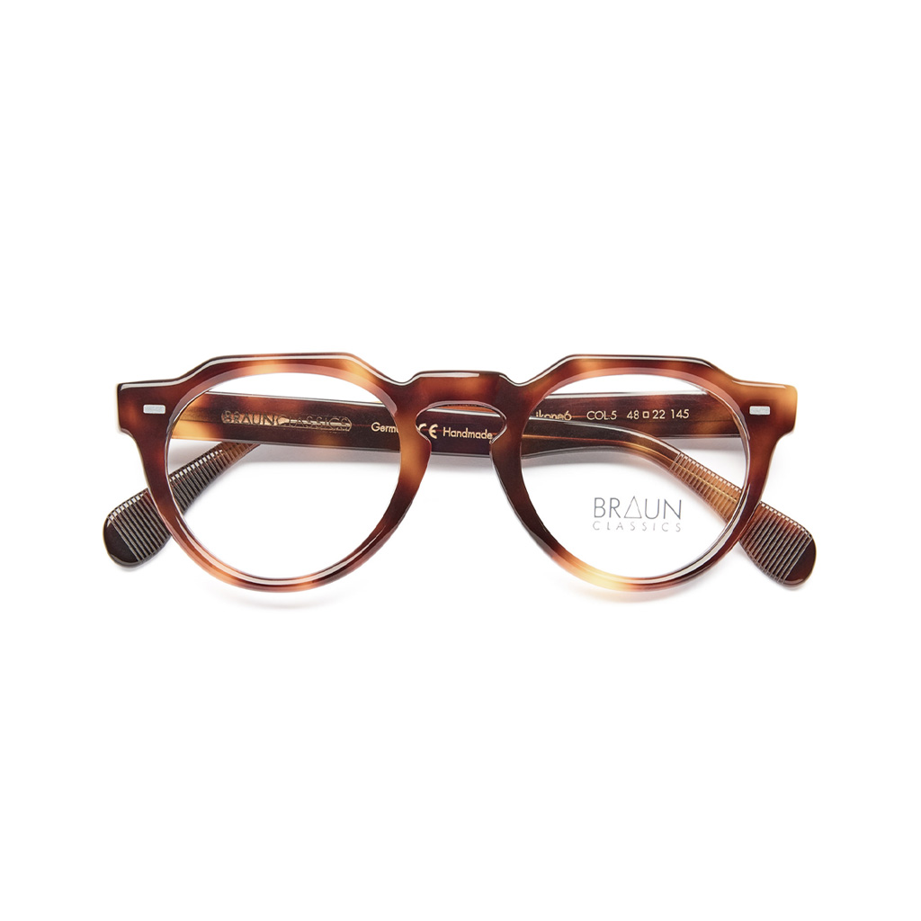 Die Kollektion IKONEN umfasst sechs klassische Modelle aus Acetaten, die sich an der Formensprache der Brillenmode der 30er, 40er und 50er Jahre des letzten Jahrhunderts orientieren. Mittelteil und Bügel werden mit einem fünfrolligen Scharnier verbunden und die flachen Funktionsnieten sind eine Hommage an den Brillenbau vergangener Zeiten.
